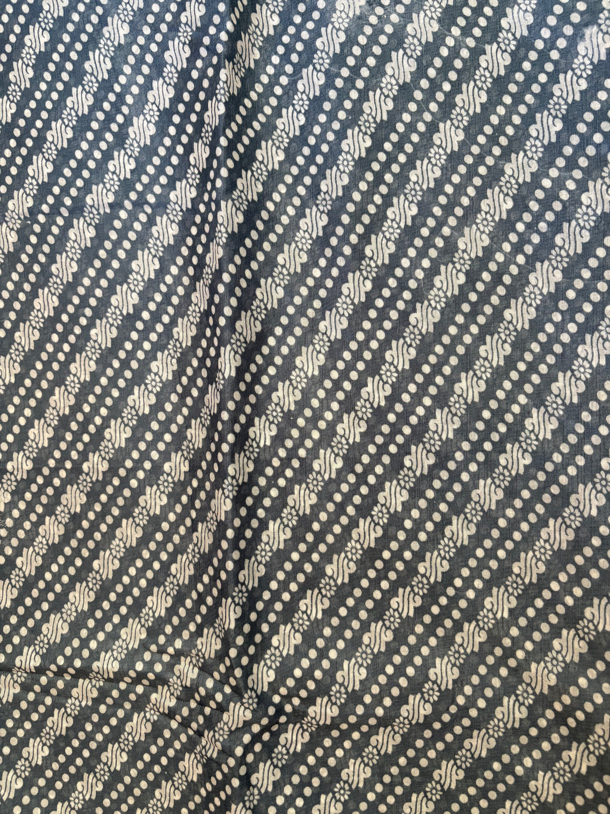 The subtle grey base paired with traditional bandhani-inspired prints and a classic woven border creates a sophisticated yet understated appeal. Its soft texture and breathable fabric ensure all-day comfort, making it easy to carry from morning to evening.