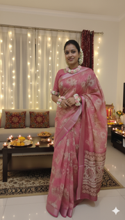 Floral Print Organza Saree – Dreamy Celebration Pink